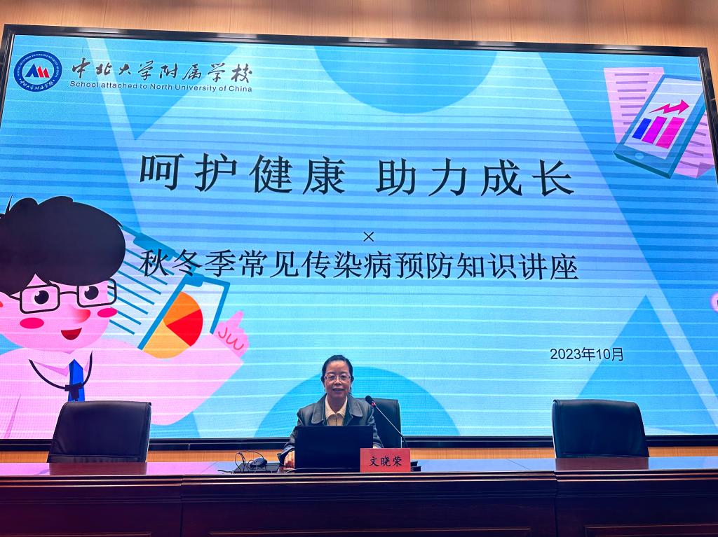 秋冬季是各种流行性和传染性疾病多发季节,为了提高广大师生对常见传染病的认知度,帮助师生掌握校园常见传染病的防治知识,增强师生健康意识和防疫能力。10月18日下午,我校特邀中北大学校医院儿科门诊文晓荣大夫开展了“秋冬季常见传染病预防知识”专题讲座。