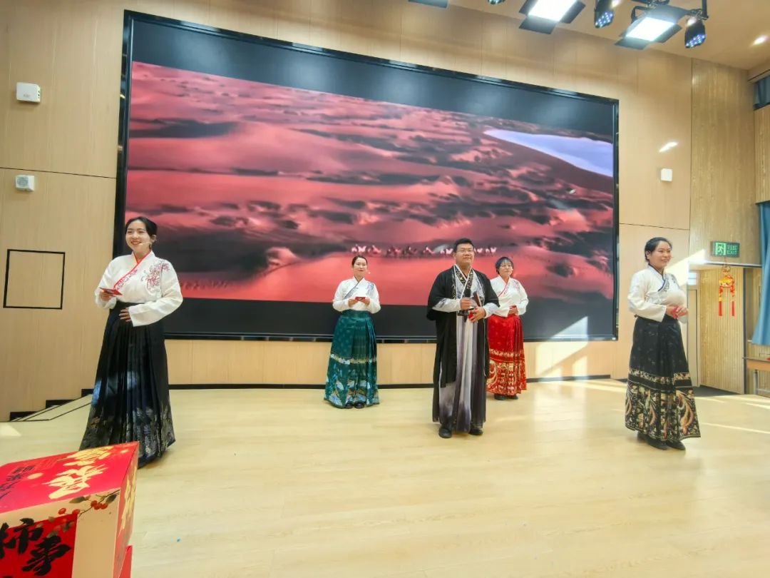 本次联欢会不仅是一场视觉与听觉的盛宴,更是一次心灵与智慧的碰撞。活动在一段精彩绝伦的开场舞中拉开序幕,教师们身姿矫健,舞步灵动,仿佛将新年的第一缕阳光提前带入会场,瞬间点燃了现场的气氛。随后,一系列精心准备的节目轮番上演,既有深情并茂的诗歌朗诵,表达了教师们对教育事业的无限热爱与奉献;也有幽默诙谐的三句半表演,展现了教师们风趣幽默的一面,让笑声与掌声此起彼伏,不绝于耳。