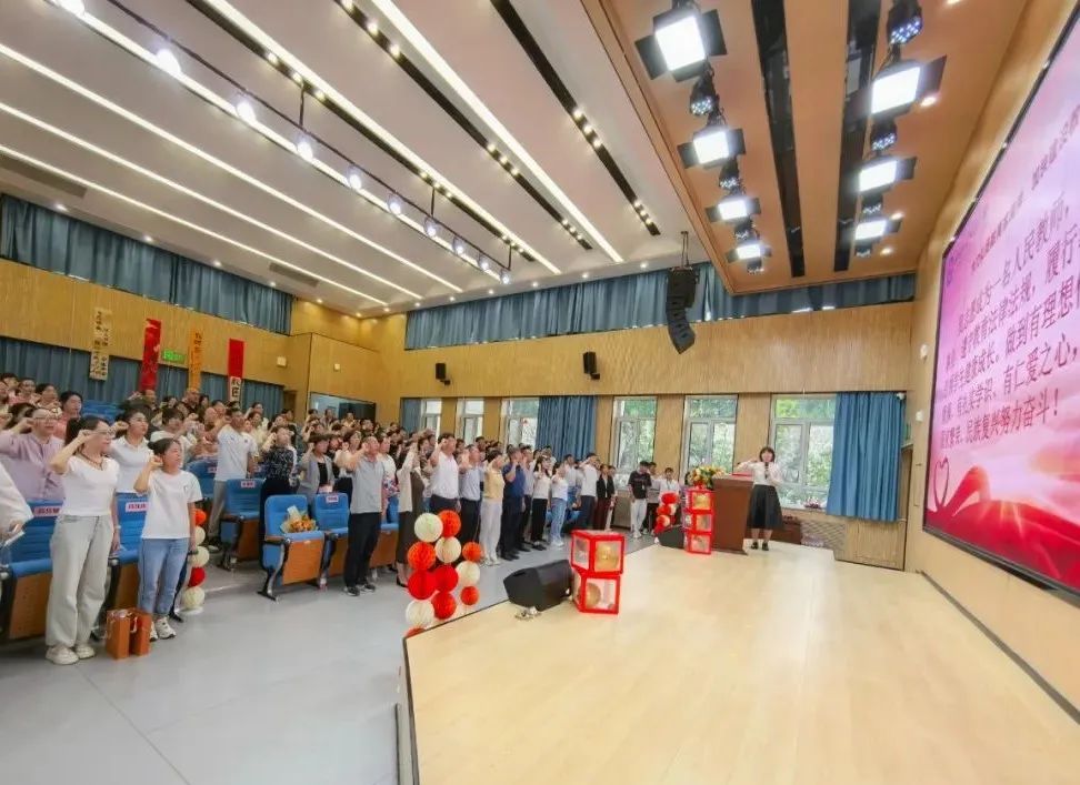 张校长向全体教师致以节日祝贺与崇高敬意。她回顾了教师们的辛勤付出与辉煌成就,展望了教育新愿景,强调个性化教育的重要性。张校长提出四点希望,鼓励教师通过营造多元、包容、创新的文化土壤,以开放的心态、专业的素养,成为学生成长的引路人与心灵的灯塔。她号召全体教师携手并进,共推学校发展,以饱满热情、坚定步伐,让每位学生绽放独特光彩。