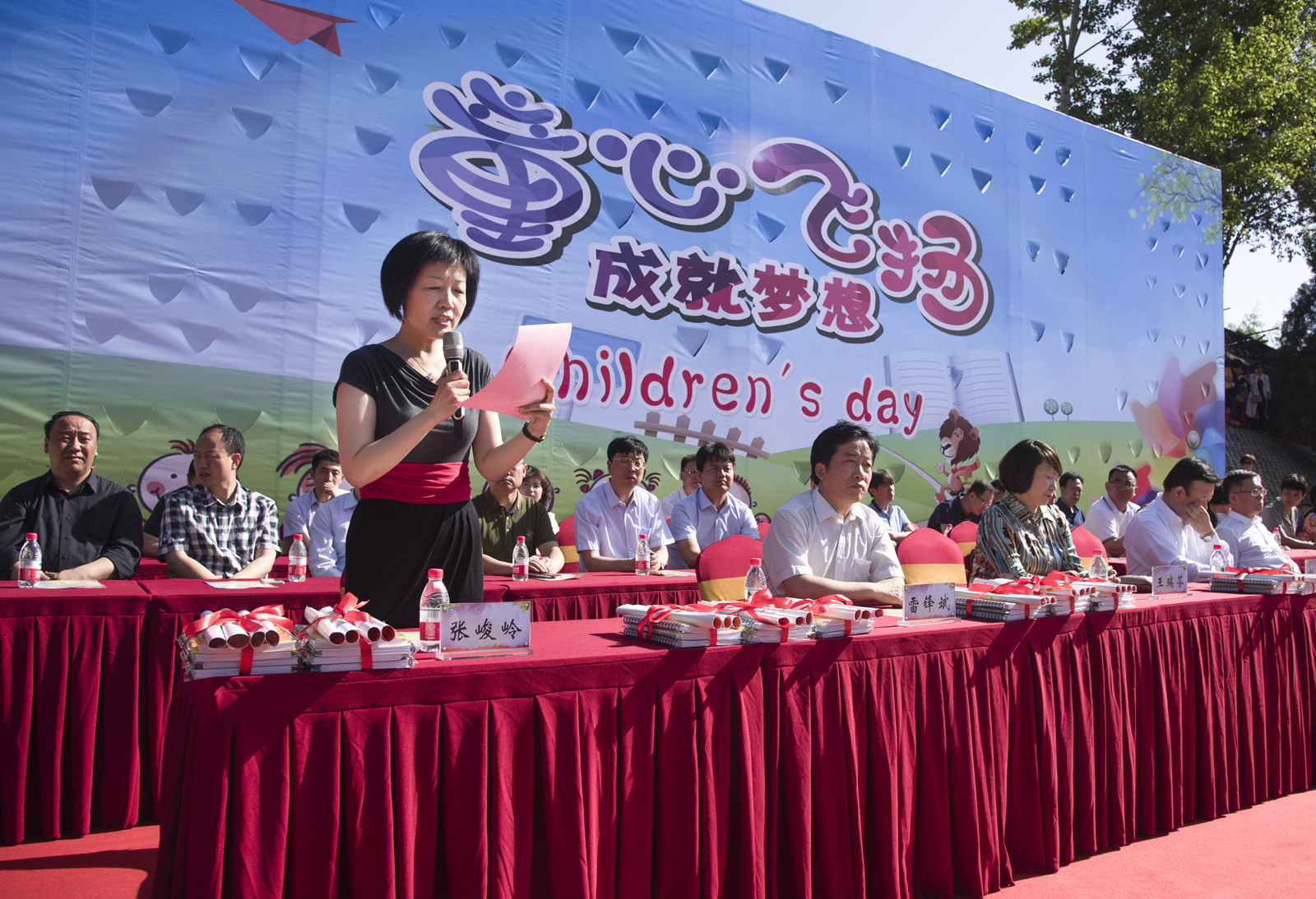 上午八点三十分,大会正式开始。 首先由李琪副校长介绍了到场嘉宾。随后张峻岭校长致辞,代表全体教职工向莅临大会的各位领导、来宾、家长表示热烈欢迎,向即将受到表彰和即将毕业的六年级同学表示衷心祝贺,并向每一位小朋友送上诚挚的节日祝福。她说:“‘一年新气象,三年要变样,五年大变样’,我们已经踏上了打造‘人民兵工第一校’优质教育品牌,全省一流学校的征程。”学校要为孩子们打造“展示自我,童心飞扬”的追梦平台,要让每一位即将进入初中学习的孩子在崭新的初中阶段“保持一颗好奇心,培养一生好习惯,练就一身好体魄”,健康茁壮成长。