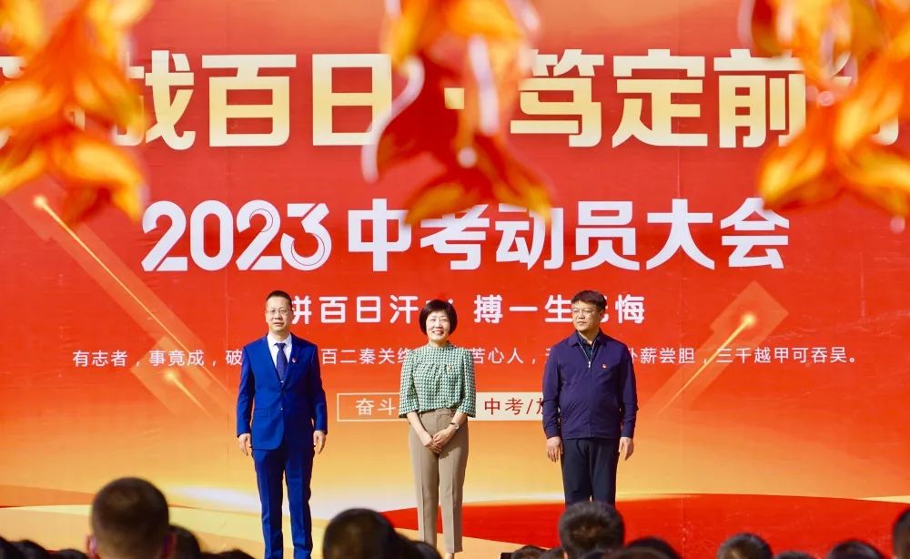 在距中考百日之期,为充分调动九年级学生的学习积极性,赢战中考,附属学校隆重举行“踔厉奋发赢战百日,笃定前行共向未来”主题中考百日誓师大会,校长张峻岭,副校长李琪、张志岗出席大会,全体初三教师、初中部学生及初三学生家长参加会议。