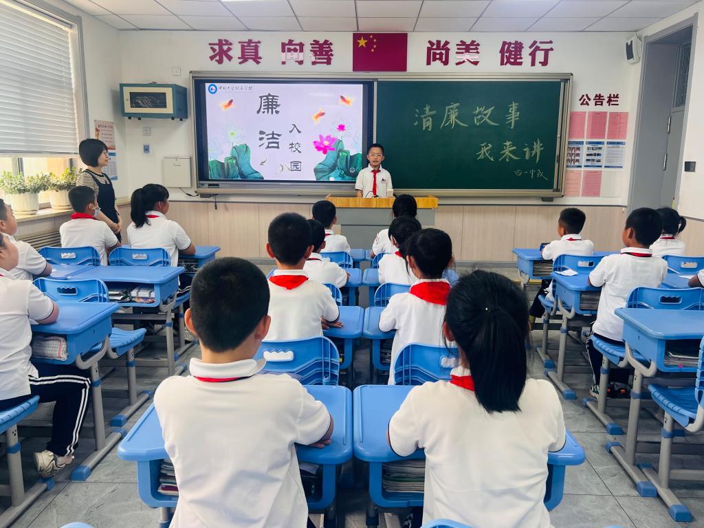 班主任通过讲清廉名人故事,对学生进行“敬廉崇洁”教育,带领学生认识历史上的清廉人物,如包拯、于成龙、海瑞、狄仁杰、杨善洲等,让学生感受清廉文化的内涵,三至四年级学生分享了关于清廉的小故事。围绕清廉学校建设,学生学习清廉童谣、进行清廉标语创作,主题明确、内容充实、色彩丰富,学生接受廉洁文化的熏陶,在内心深处播下廉洁的种子。