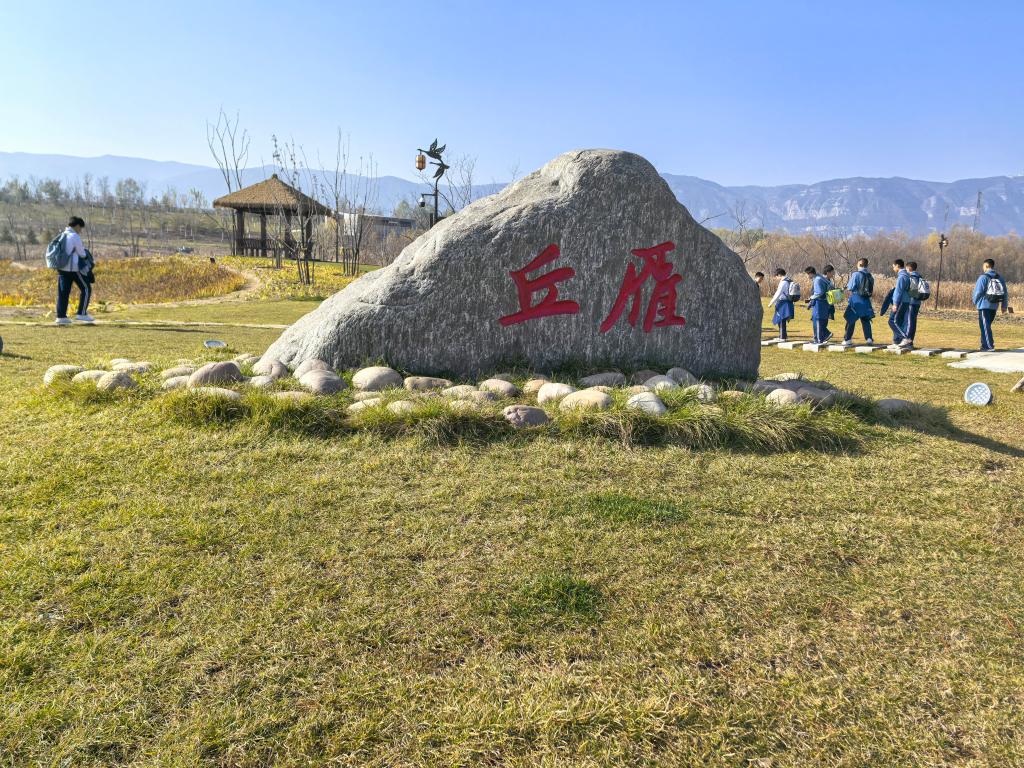 雁丘园内,古木参天,亭台楼阁错落有致。学生们或驻足观赏,或低声讨论,眼中闪烁着对自然美景的惊叹,心中怀揣着对文化遗迹的向往。他们在这里感受到了自然与人文的和谐共生,也更加深刻地理解了“绿水青山就是金山银山”的环保理念。