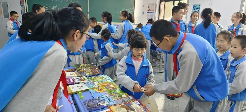 同学们兴高采烈地穿梭在闪烁着智慧光辉的书籍中,尽享“淘书”的乐趣。淘到书的孩子们脸上洋溢着幸福的笑容,有的兴奋地向同伴炫耀“战利品”,有的同学甚至迫不及待地阅读起来。