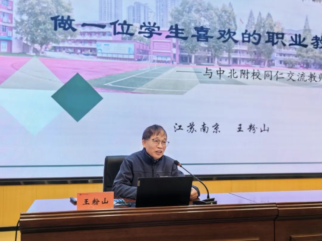 王粉山校长以《做一位学生喜欢的职业教师》为题,通过丰富的教育经验与对教育事业的深刻思考,系统分享了教师职业的核心素养。他从爱心出发,阐述了教师应承担的人文情怀与科学精神两大任务,强调培养学生生活习惯、学习习惯和学科思维习惯的重要性。王校长鼓励教师增强职业自信、专业自信、思想自信和品德自信,妥善处理好与家长、教材教法、同事、领导以及现代科技的关系,用真诚与智慧赢得学生的喜爱。