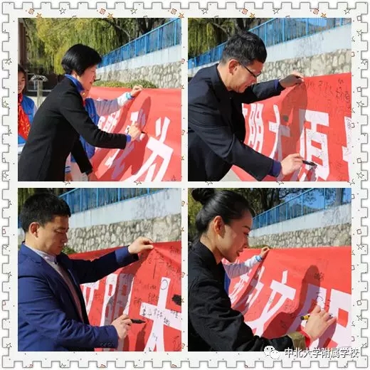 师生们在“为文明太原城代言”的条幅上留下自己的“承诺”:我知道,我参与,我奉献。
