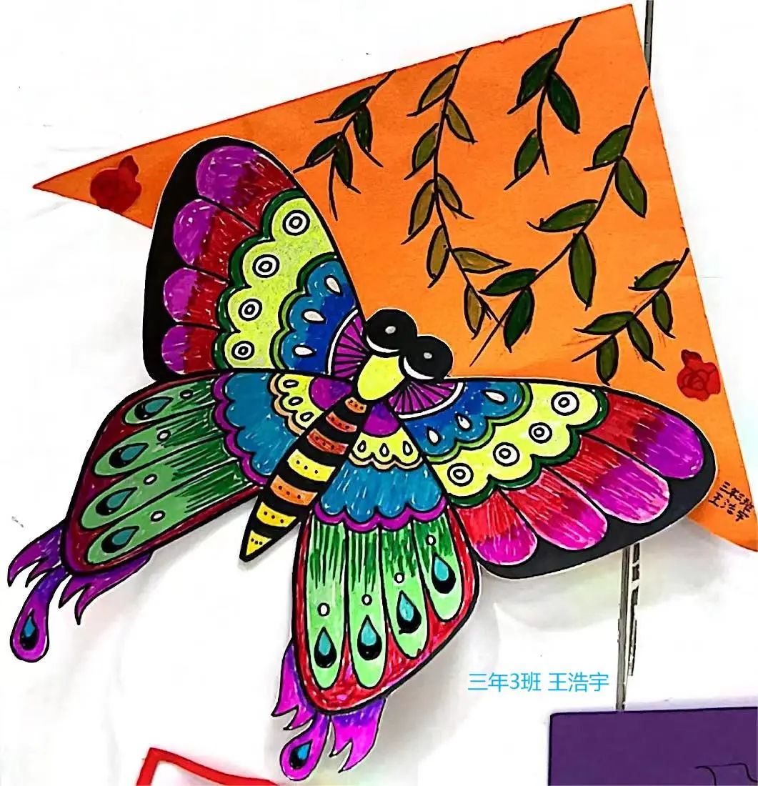 三、四年级的学生利用手中的画笔勾勒出一幅幅美丽的风筝图案,在老师指导的基础上加以创新,他们或彩笔描绘,或泼墨渲染,或手工结合,用最炫丽的色彩绘制出自己心目中的最美风筝。
