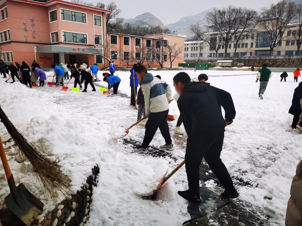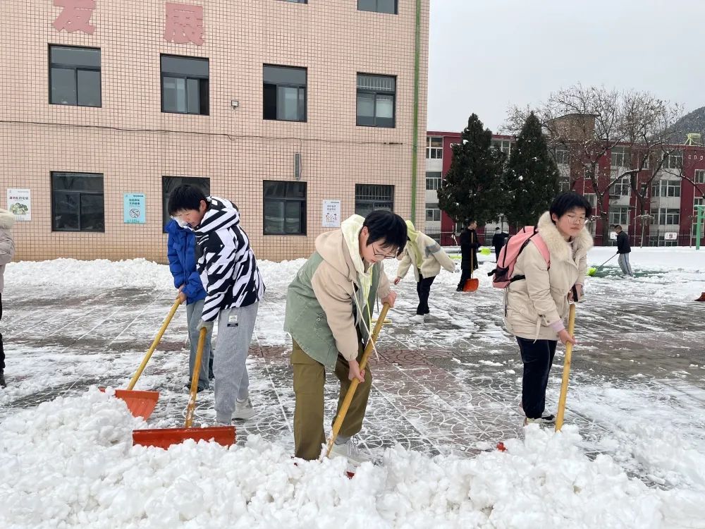 在年级组与班主任自发地组织和动员下,一支由校领导、老师、学生和家长组成的扫雪除冰队伍,在附校校园里集结,大家积极投入到清理校园积雪的战斗中。