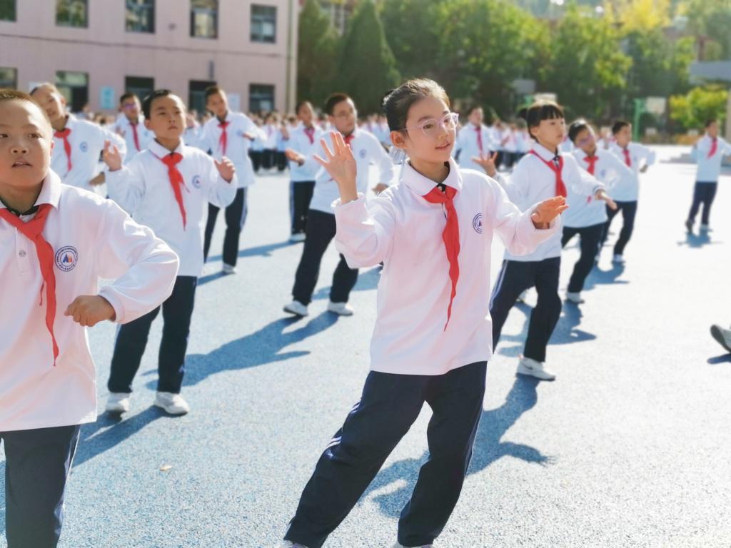 为贯彻落实“双减”工作,进一步提高学生身心健康水平,展现附校学子青春活力,促进学生全面发展,我校举办了“飒爽英姿展风采 少年筑梦向未来”自编操比赛活动。